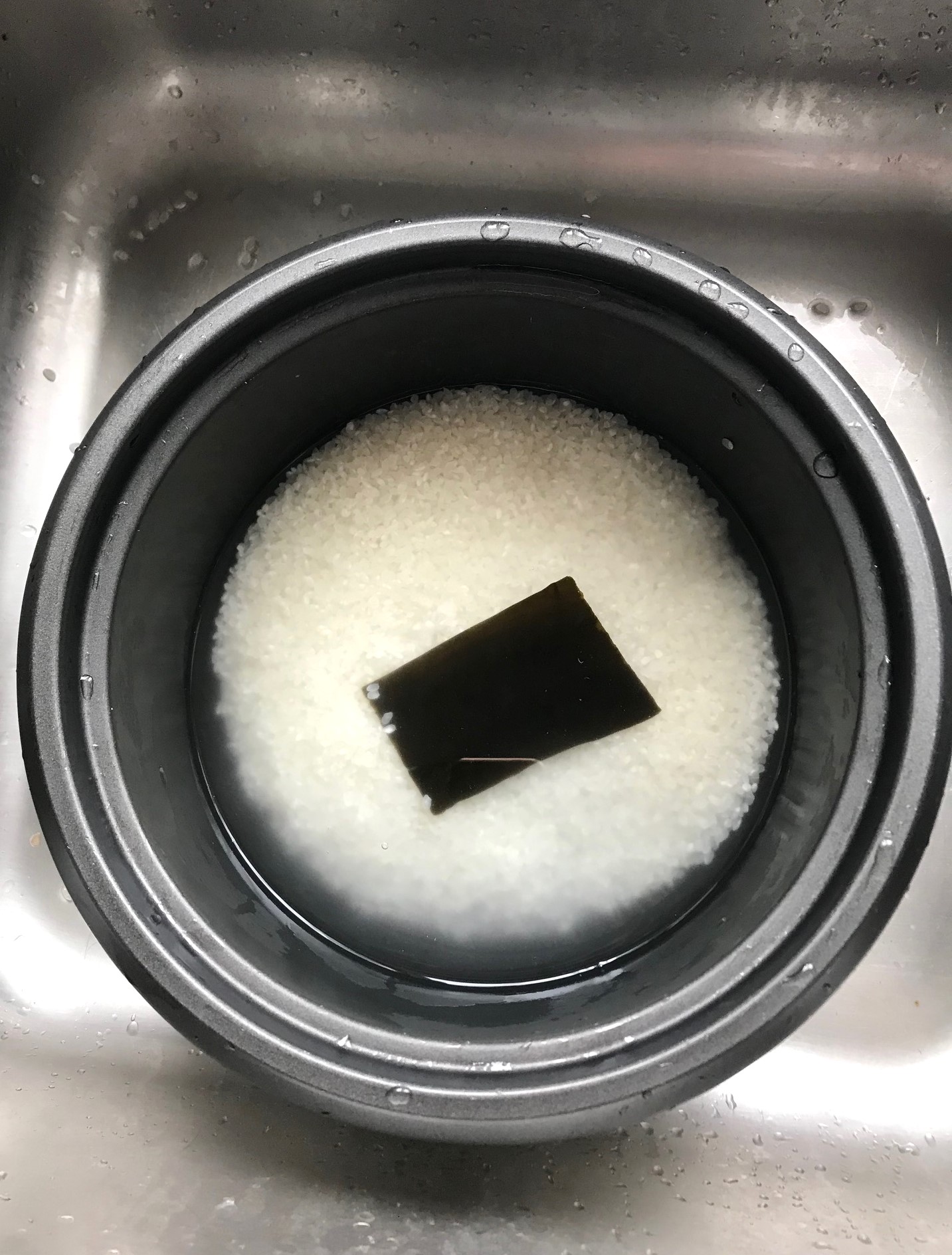 I used Yumenishiki short grain rice from the Kombini shop in Gloucester and I added a piece of Ma Kombu dried seaweed from The Wasabi Company to the rice cooker before steaming to add nutrients and improve the flavour.